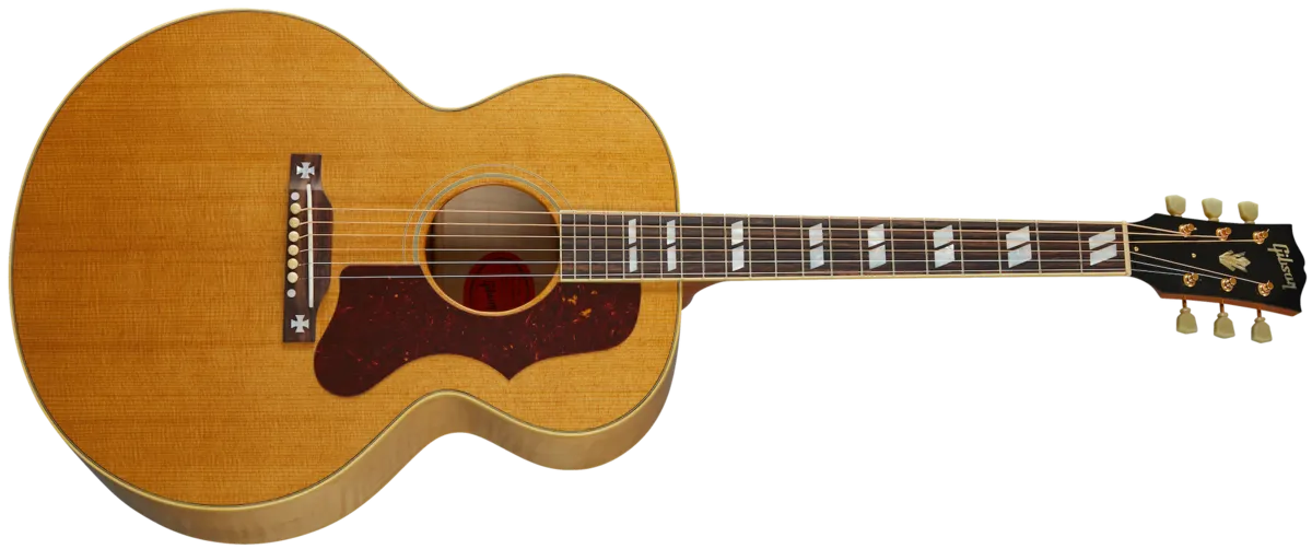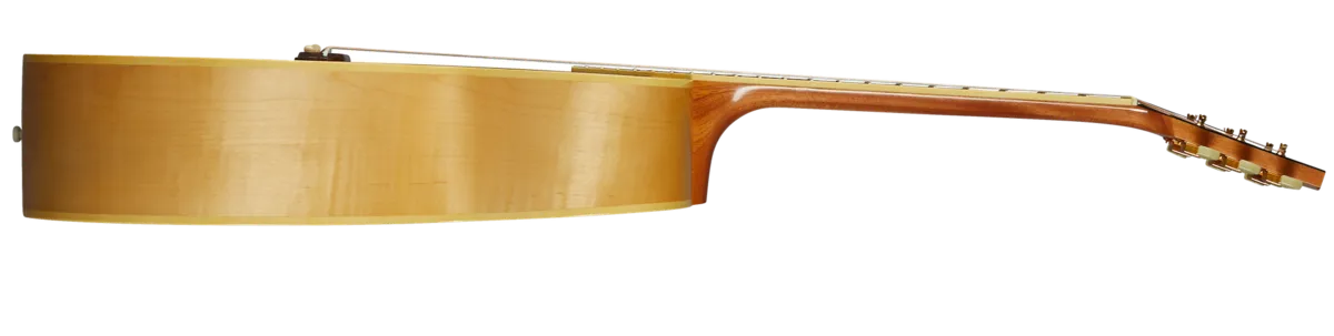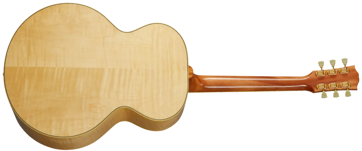 One of the most fabled Gibsons of all time, the J-185 was originally released in 1951. Designed to be just slightly smaller in proportion to the larger SJ-200, the J-185 used similar appointments, Sitka spruce and maple back and sides for its construction. This Custom Historic 1952 J-185 is enhanced with a thermally aged Sitka spruce top and gorgeous flame maple back and sides. Sporting classic J-185 appointments including iconic Maltese crosses inlaid in mother-of-pearl on the open slot bridge, this is a rare model, but highly desired by artists and performers worldwide.