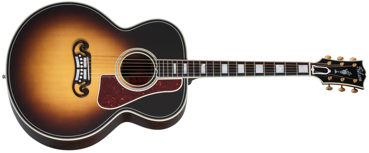 The legacy of Gibson’s “King of the Flat-Tops” continues with the SJ-200 Western Classic. From its first appearance in 1937, Gibson’s SJ-200 set an unmatched standard. The SJ-200 Western Classic from the Gibson Acoustic Custom Shop continues that tradition. With Indian rosewood back and sides paired with a AAA Sitka spruce top, it delivers impressive volume and exceptional tone. It is also one of the most stylish acoustic guitars ever created, with a four-bar Moustache™ bridge, ebony fingerboard with block mother of pearl inlays, gold Waverly tuning machines, and a Western Classic torch inlay on the headstock. A Gibson hardshell case is included.