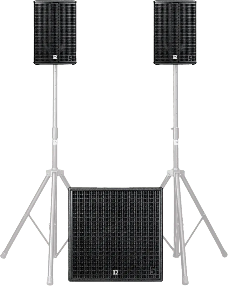 Ideal setup for clubs, bars, hotel business, entertainers, DJs, smaller bands with the requirement of an impressive performance with suitable radiation at the same time.