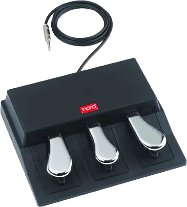The Nord Triple Pedal offers an unprecedented functionality, with the addition of a dynamic control of the mechanical noise during operation, and the ability for you as a player to use half-pedalling and "release and catch" techniques.The right pedal is the sustain pedal. When the sustain pedal is operated on an acoustic grand or upright piano, many different sounds are produced by the mechanical components, several of the sounds can be reproduced.