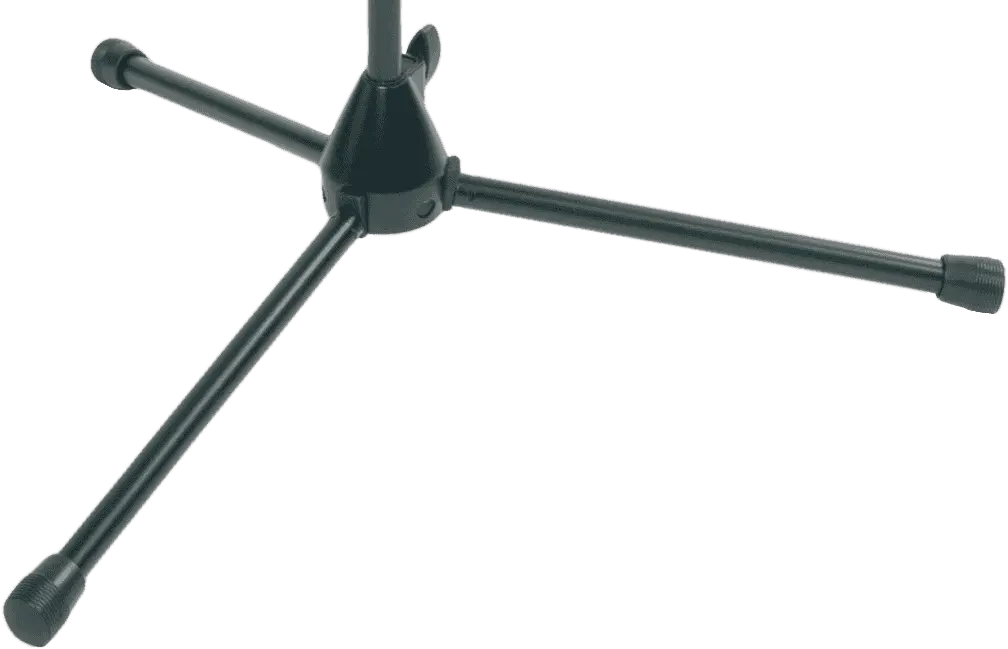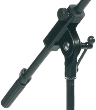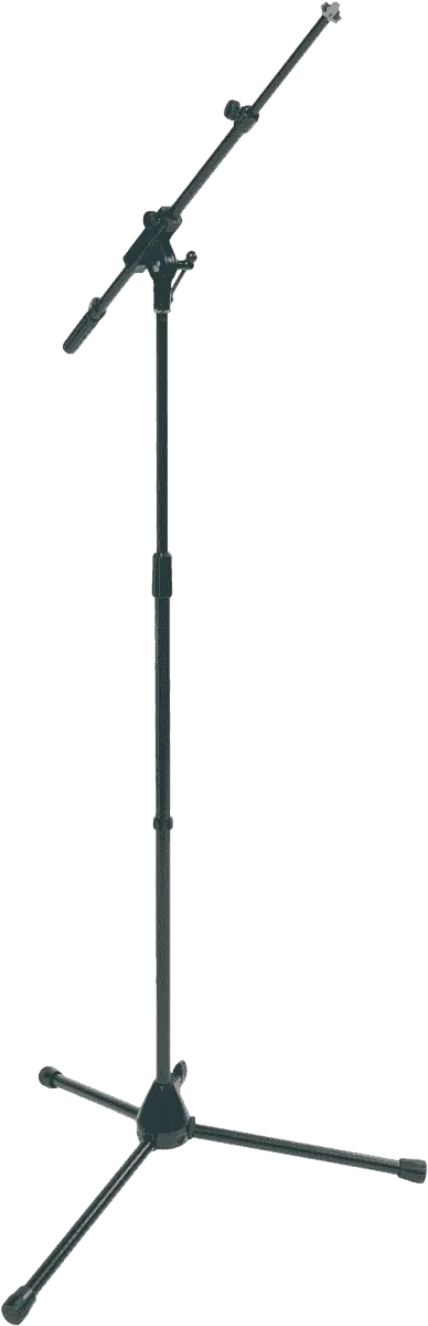 Microphone stand with three legs and telescope arms. The length of ther arm is adjustable.