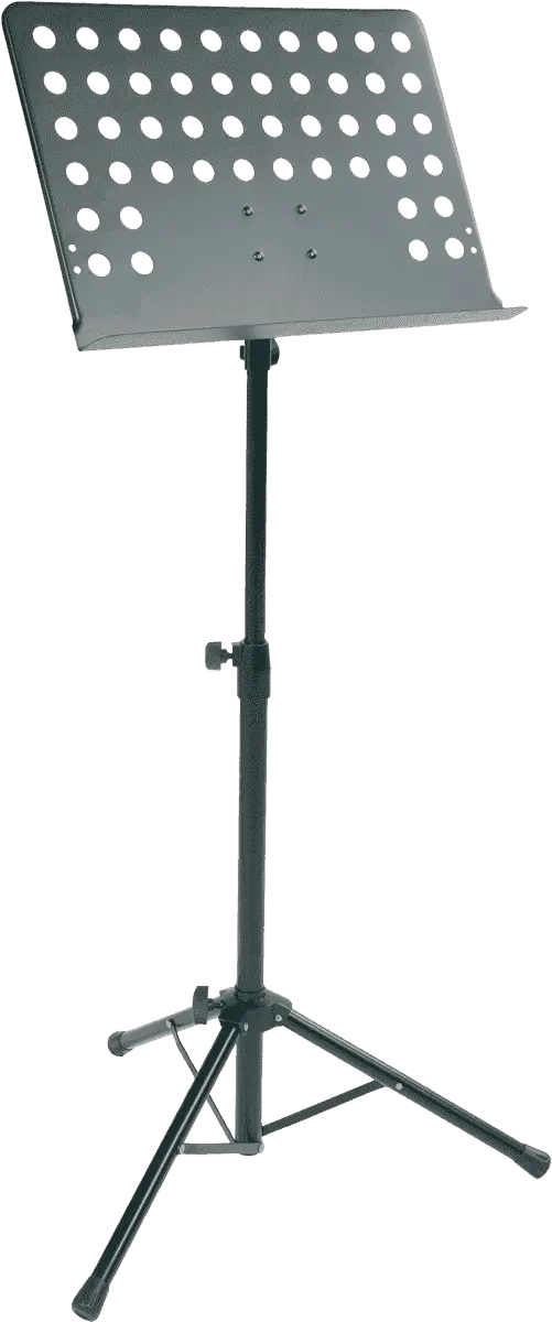 Robust and stable music stand for conductors and with 3 perforated metal plates.