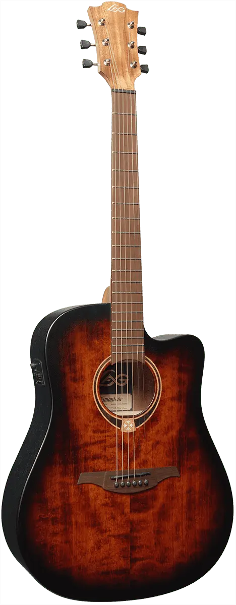 With a dreadnought cutaway electro-acoustic body shape, the T70DCE-B&B delivers a robust sound while allowing easy access to higher frets. Its black and brown satin finish not only adds to the guitar's aesthetic allure but also reflects the unique identity of Lag Guitars.