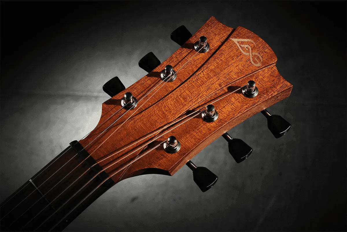 The guitar draws from Lag's renowned Tramontane series, including the iconic mirrored headstock and bridge shapes, crafted from BrankoWood. Black tuning pegs and elegant body bindings offer a distinctive and comfortable appearance.