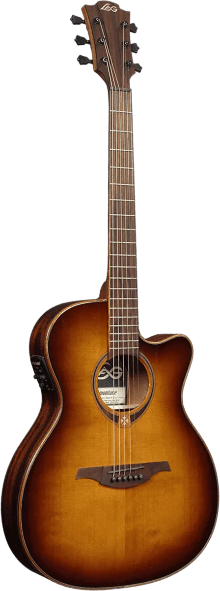 Featuring an auditorium slimline cutaway shape, the Lag T118ASCE-BRS provides a balanced sound and comfortable playing experience. The Brown Shadow finish on the top adds a unique touch to its visual elegance. Ideal for those who prefer a smaller body without sacrificing sound quality, the solid Red Cedar top, Khaya back and sides, and glossy varnish finish all contribute to its refined look.