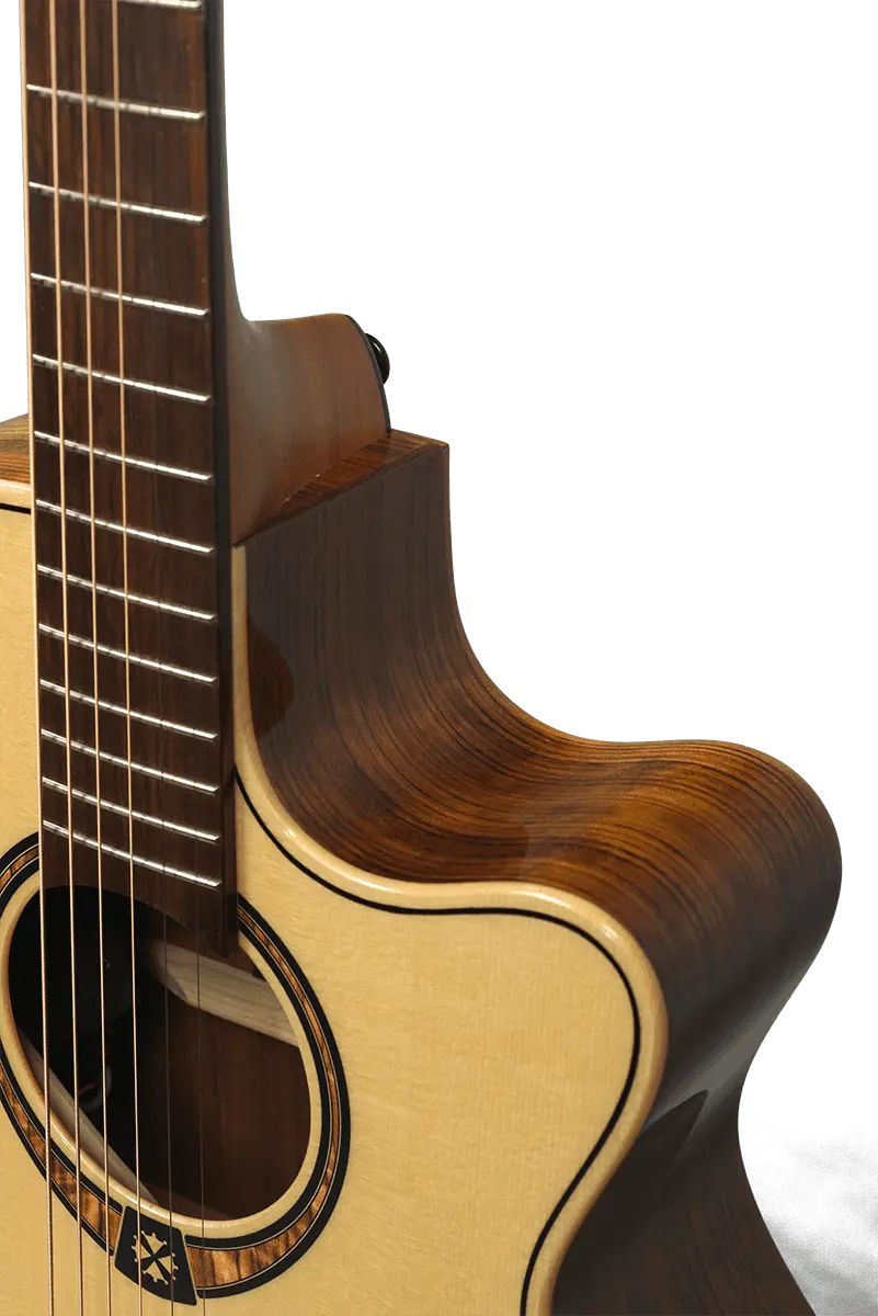 The Lâg T318ACE features an auditorium cutaway electro acoustic body shape, adding versatility to the tonal range of the instrument, making it suitable for a wide array of musical genres and playing techniques.