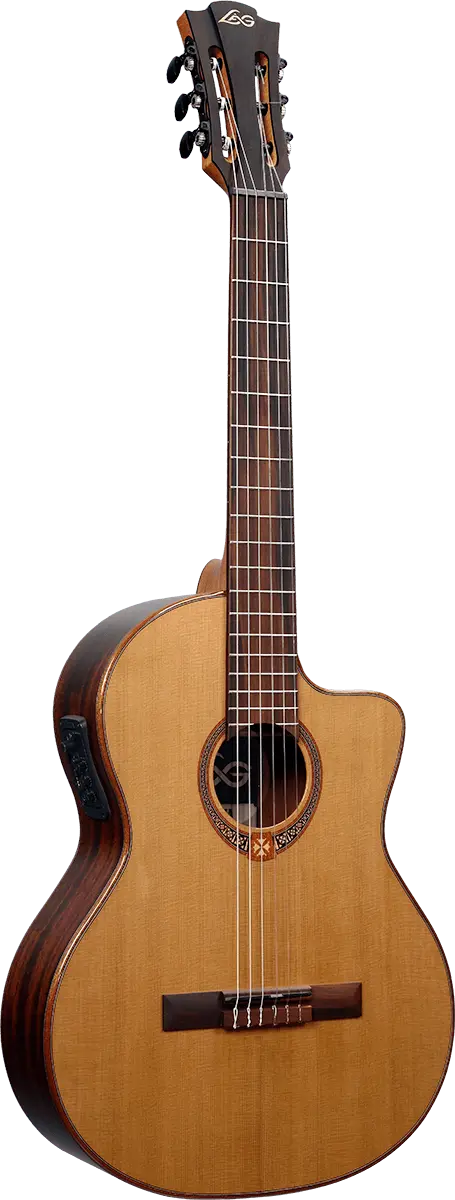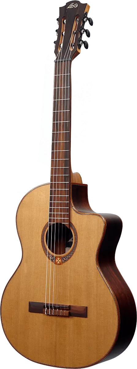 The Lâg OC118CE represents a blend of traditional craftsmanship and modern innovation within the Occitania series, providing a versatile instrument that appeals to classical guitarists.