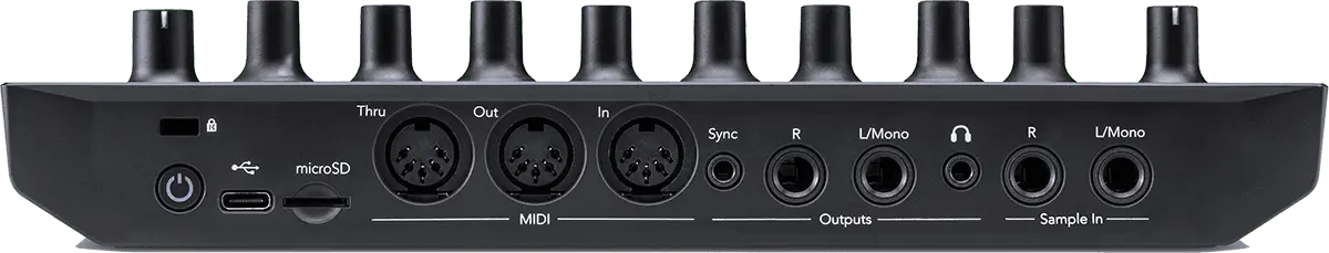 - Outputs : headphone, Midi, sync out, 2 x jack