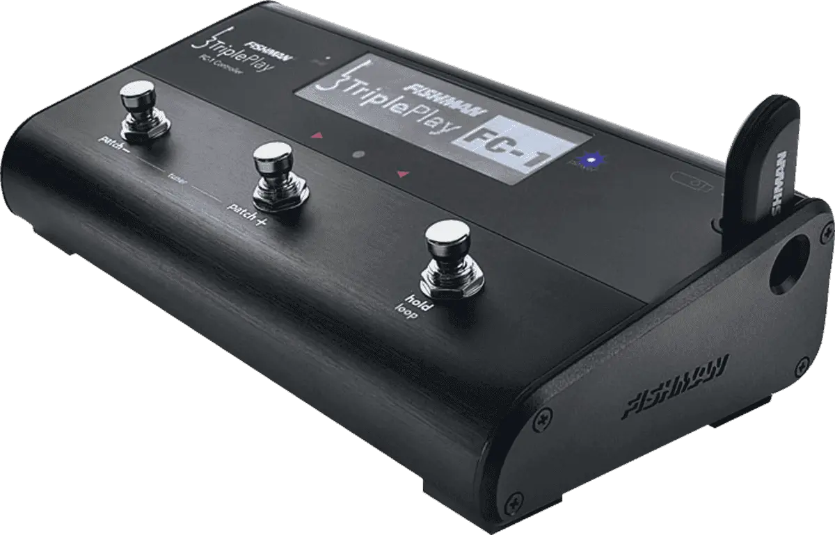 Three programmable switches default to patch selection, hold, tuner access, and TriplePlay sensitivity settings, with the added ability to program each to send a separate MIDI CC as a momentary or latched controller. An additional programmable expression pedal input allows you to control volume or any other MIDI CC as well!