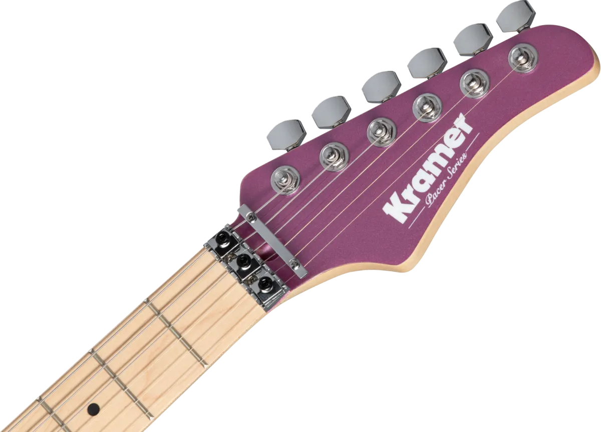 The Pacer Classic is part of Kramer's Original Collection and is a superb tribute to the original 1982 Kramer that knocked the guitar world for a loop. The Pacer Classic is built for speed, with a 25.5" scale maple neck with a Kramer K-Speed SlimTaper™ C profile and 22 medium jumbo frets. The Pacer Classic has chrome hardware, an alder double-cutaway body, a pair of double white, open-coil Alnico Classic 5 humbuckers™, and a licensed Floyd Rose® Tremolo bridge and R2 Locking Nut. Available in Radio Blue Metallic, Scarlet Red Metallic, and Purple Passion Metallic gloss finishes.