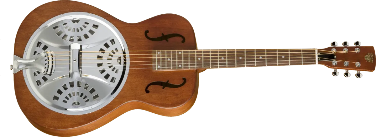 The Dobro Hound Dog Roundneck resonator guitar gives you the sound of traditional American music. Since the 1920s, the Dobro has been one America's fundamental acoustic instruments, finding its way into bluegrass and blues and defining the sound of country. With a Dobro Hound Dog Roundneck guitar, you get classic Dobro sound with stunning good looks. Whether you're playing on the porch or jamming with a group, you'll love the distinctive sound of this resonator. Get the sound, style, and live performance you need with a Dobro Hound Dog Roundneck resonator guitar!