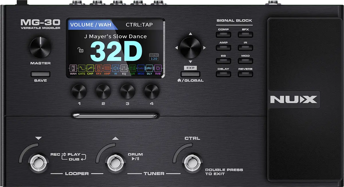 Since NUX announced MG-300 the best-budget compact modeler on the market ever— people started noticing the TSAC-HD (White-Box) Modeling Algorithm. It offers you realistic amp response and playability. And now, the MG-30 provides you better definition from HD to 2K ! With 2 powerful NXP® RT processors, MG-30 drives 1024 samples Impulse Response resolution with ultra-low system latency to give you tight and fast response. Premium 32-bit 2-channel AD/DA converters realize "high quality sound performance". MG-30 has super wide dynamic range ~ 110dB !