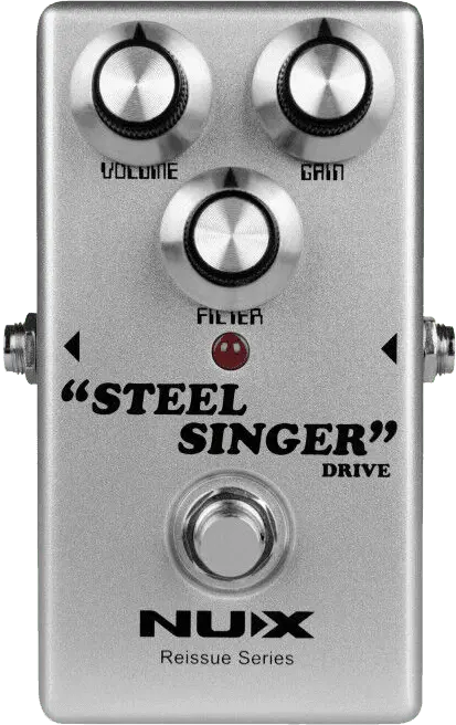 The NUX STEEL SINGER DRIVE pedal from the Reissue Series is an overdrive pedal with the tonal character of the famous boutique amp from California. It has very smooth high end and sweet mid-range. Whether used as main overdrive or in conjunction with a guitar amp, the NUX STEEL SINGER DRIVE pedal is going to make your guitar sing!