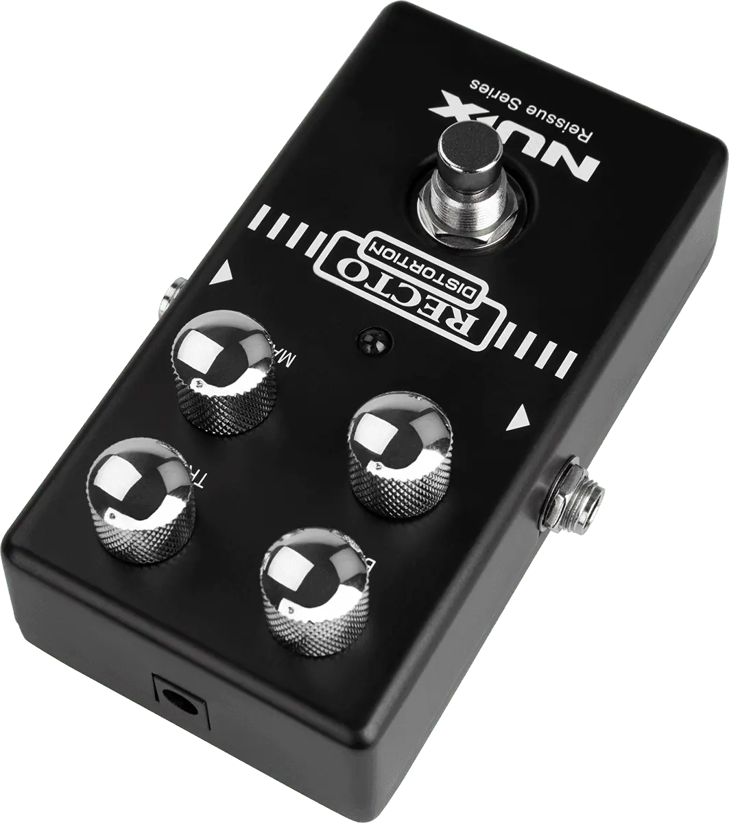 The NUX REC TO DISTORTION pedal from the Reissue Series as a heavy distortion sound with tight bass response. It utilizes pure analog circuit to simulate that typical famous American pre-amp high gain tone from the 90s'!
