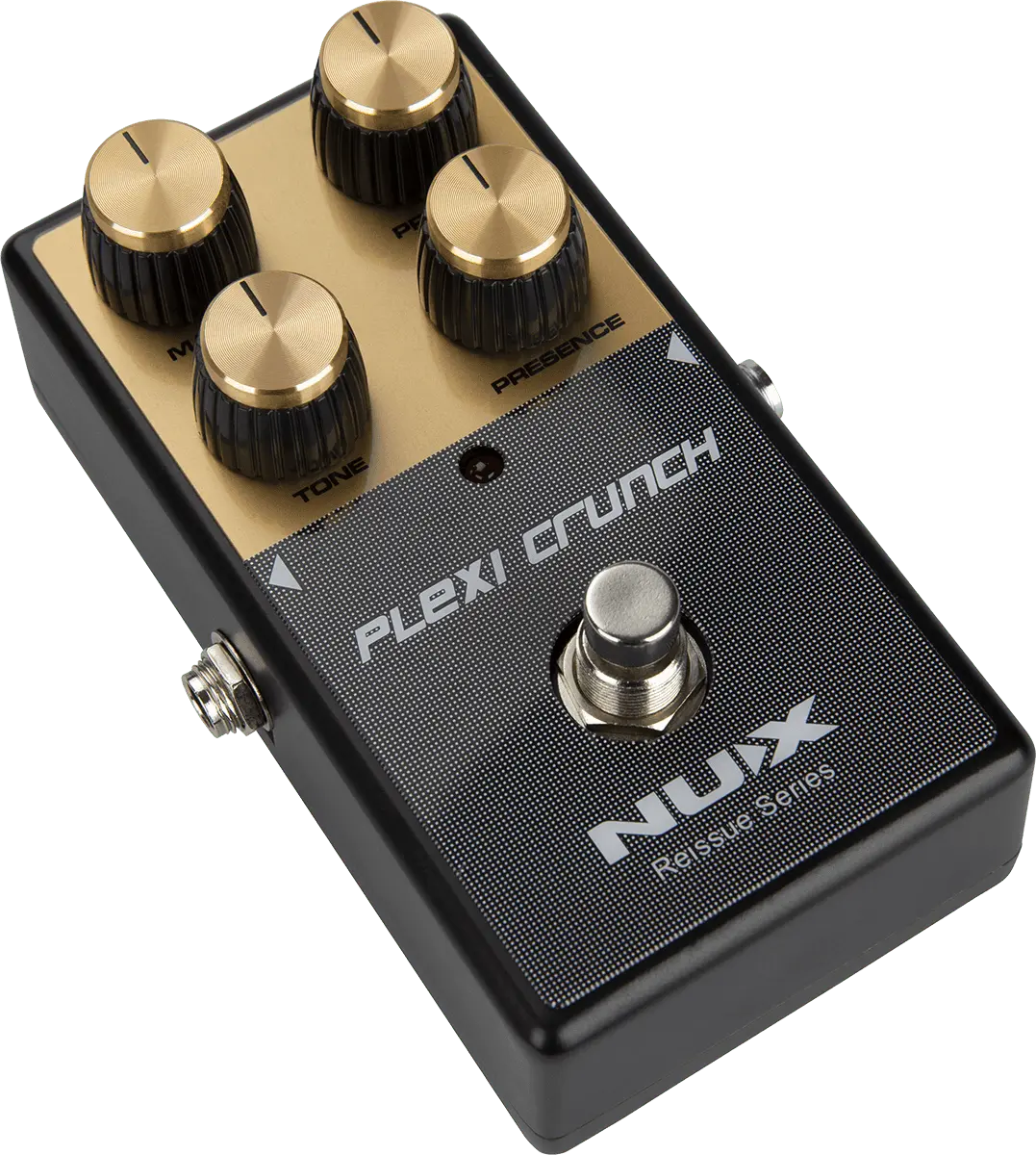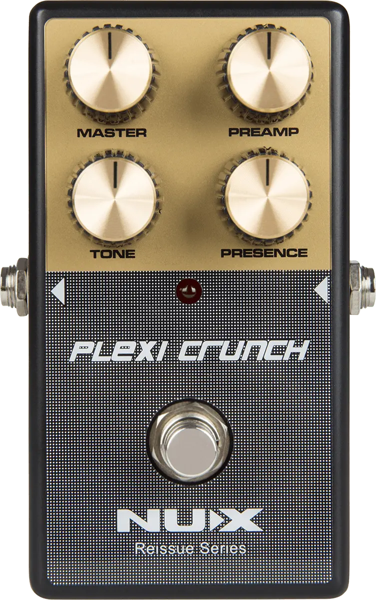 The NUX PLEXI CRUNCH pedal from the Reissue Series offers youhigh gain distortion tone withthe character of the famous hot-roded British valve amps from the golden age of Rock.