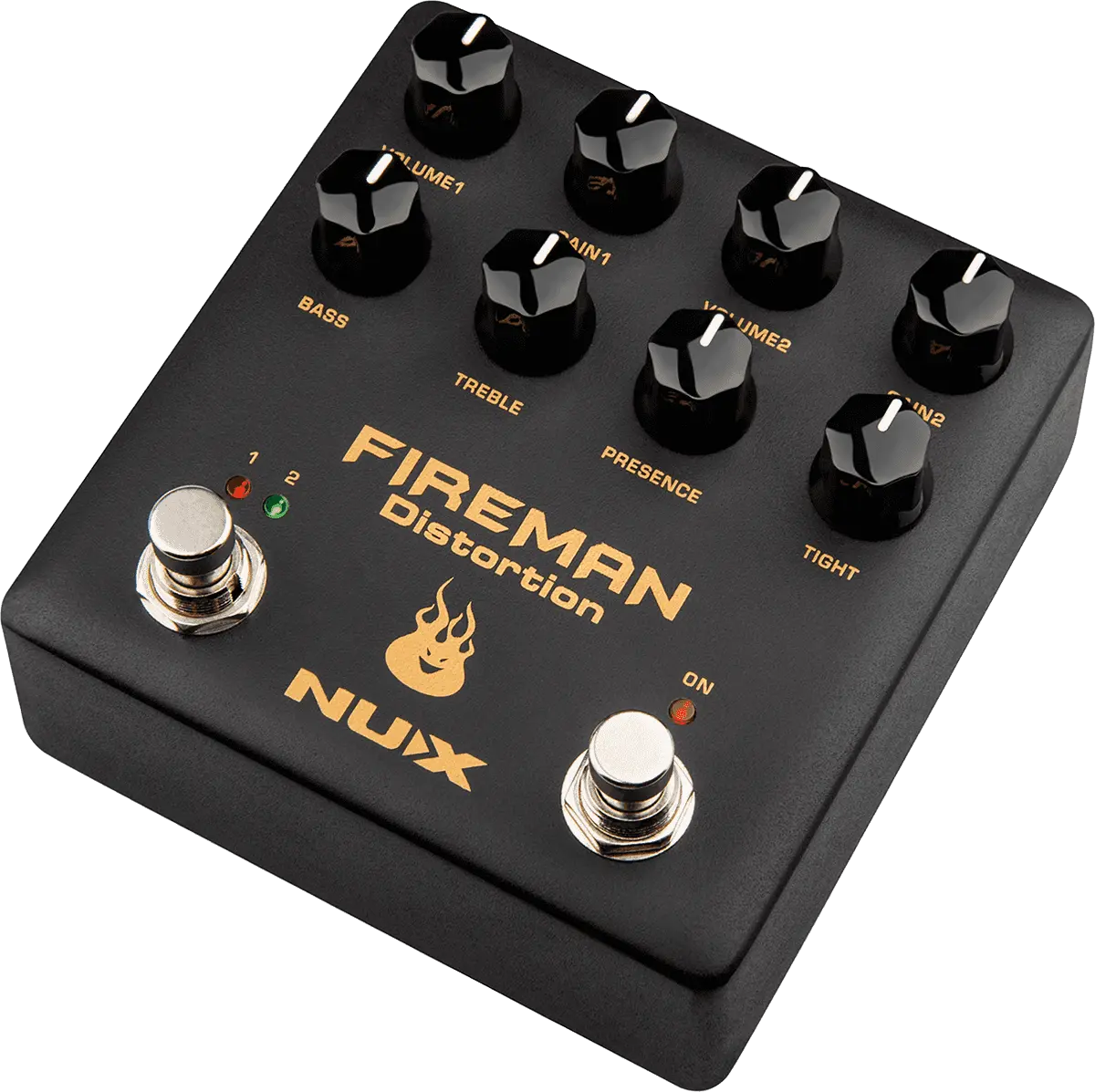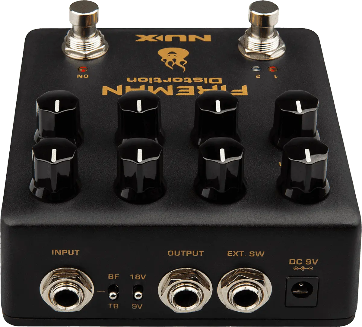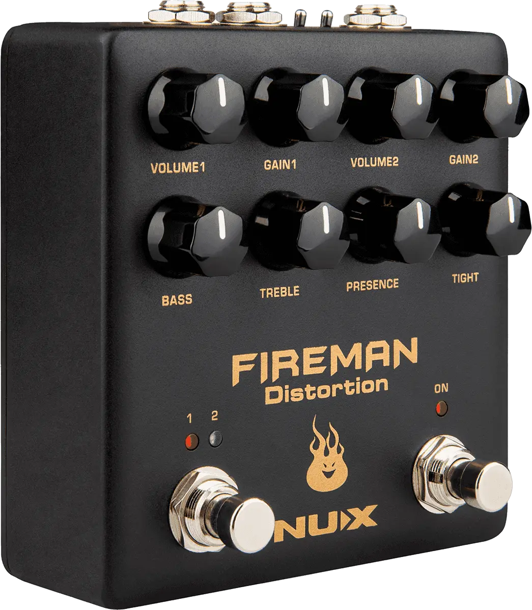 FIREMAN is based on the legendary amplifier builder's famous distortion pedal. It's a very amp-like distortion pedal with Modern Brown Sound. We designed it with 2 independent VOLUME, GAIN control knobs to fit rhythm and solo applications. FIREMAN offers a True-bypass / Buffer-bypass toggle switch, and a 9V / 18V toggle switch. The 18V position doubles the working voltage inside to give you wider dynamic range.