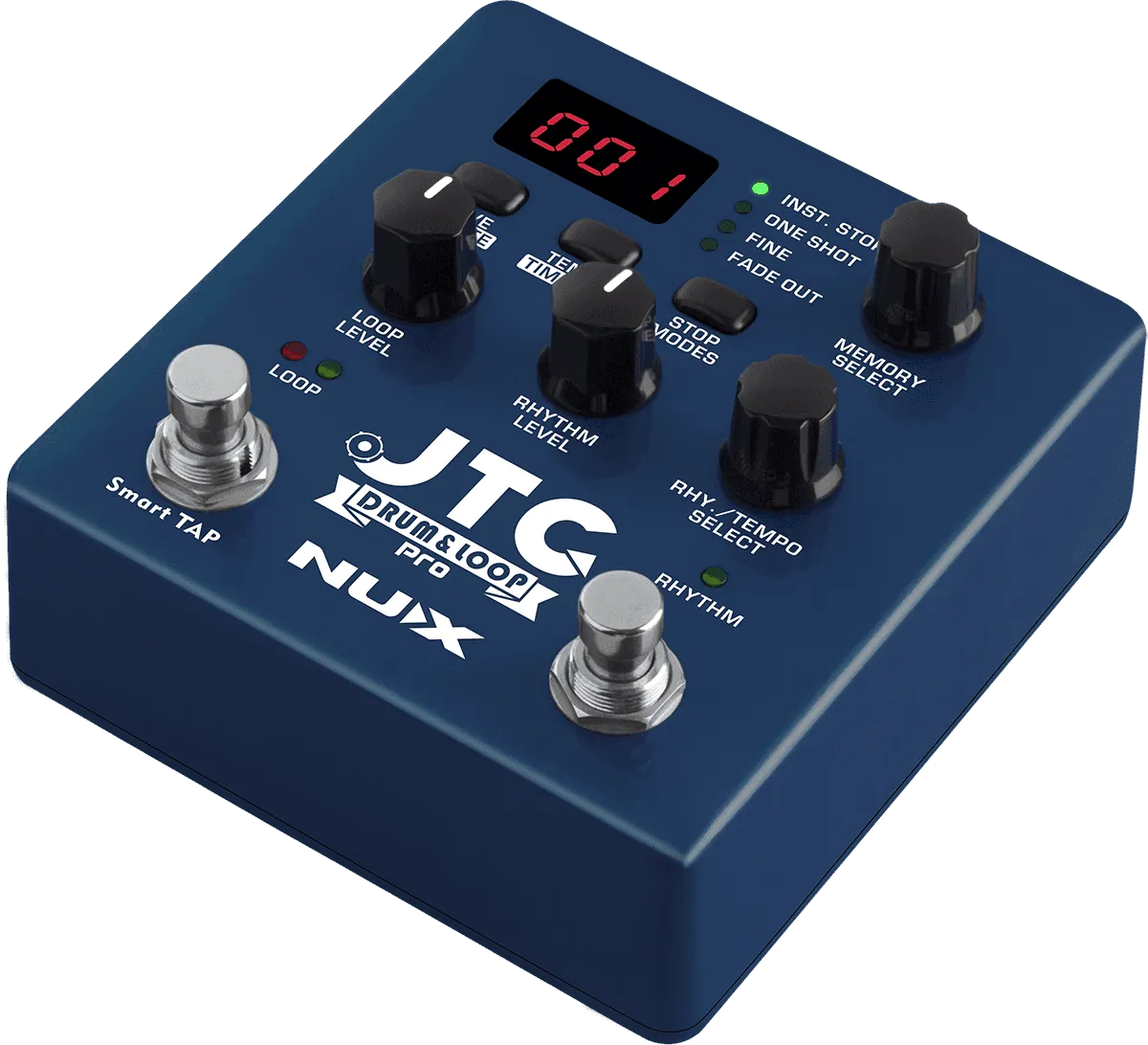 It has independent controls for the looper and the drum: left footswitch (LOOP) controls recording, overdub, and start/stop of the looper. This switch also features NUX patented Smart TAP function, which automatically detects whether you want to control the looper or to set the tempo of the drum.