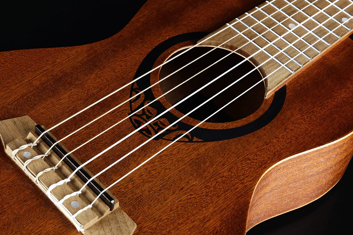 The all-sapele construction (top and body) delivers a clear, lively tone with warm resonance, perfectly adapted to its small format and higher tuning.