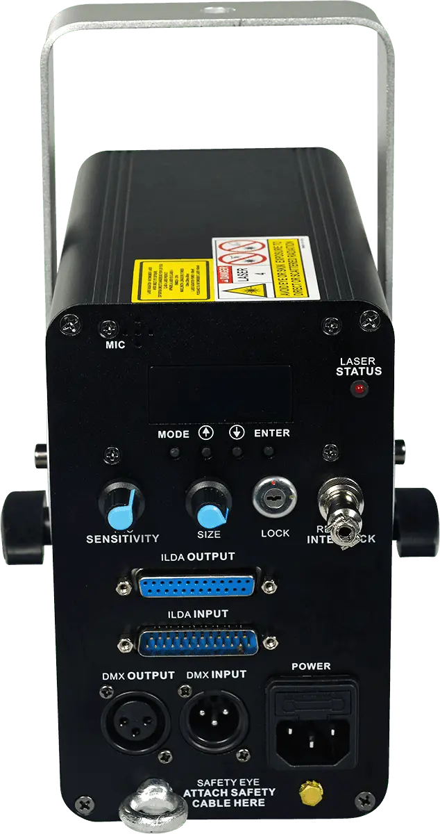 - Class 3B laser with safety key and interlock connector