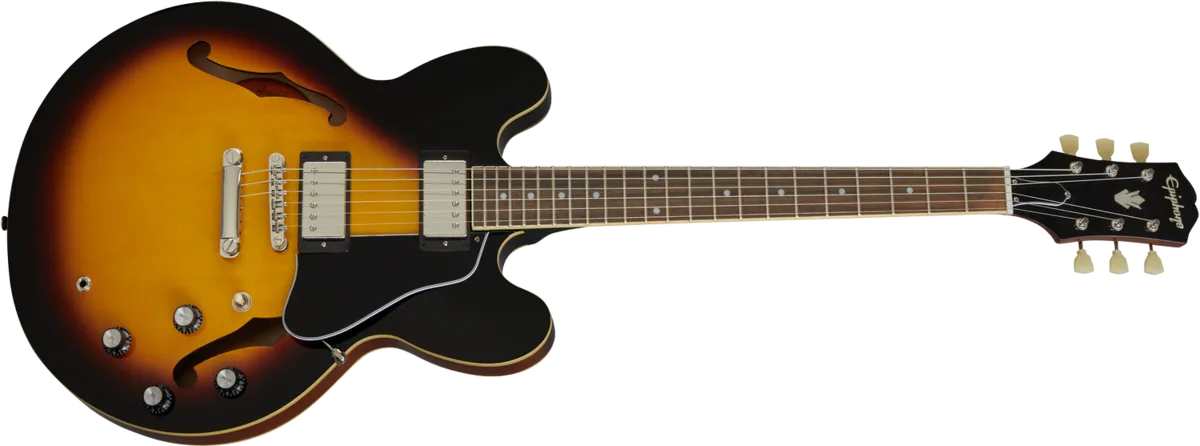 The ES-335 is Epiphone's version of the historic ES-335 that has been wowing guitar players all over the world for over six decades. From its inaugural appearance in 1958, the Gibson™ ES-335 set an unmatched standard. Our Epiphone ES-335 is no exception. It is simply one of the best deals today for guitar players who want the classic sound of an ES-335 at an accessible price. The ES-335 is crafted with a layered maple top, back, and sides coupled with a solid maple tone block to create the amazing sustain, warmth, and resonant tone that players crave in a semi-hollow instrument. Epiphone's Alnico Classic PRO™ Humbuckers deliver a wide range of vintage sounds while the rounded C neck profile is extremely comfortable and easy to play, and the headstock features the 60s style Kalamazoo shape.