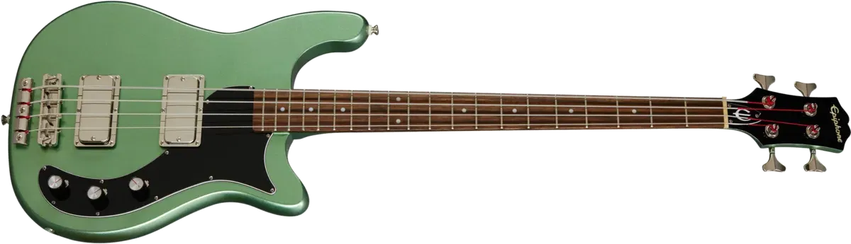 Ever since it was first introduced in 1963 the Epiphone Embassy Bass has been a player favorite, and now it's back and better than ever. Featuring an asymmetrical solid mahogany double-cutaway body, a 34" scale mahogany neck capped with an Indian laurel fretboard with 20 medium jumbo frets, a 2 x 2 headstock design for improved balance, and a pair of powerful ProBucker™ 760 humbucking pickups, along with master volume and tone controls, as well as a pickup blend knob for outstanding tonal versatility.