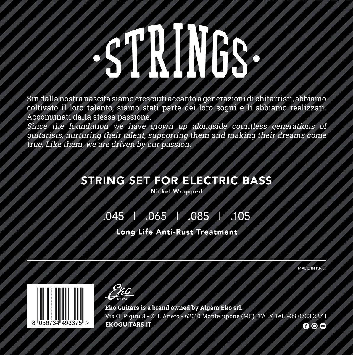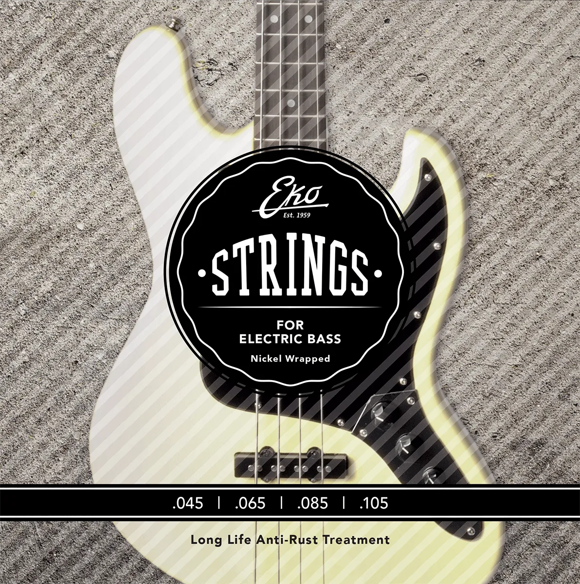 4 pcs steel nickel plated electric bass roundwound strings with medium tension.
