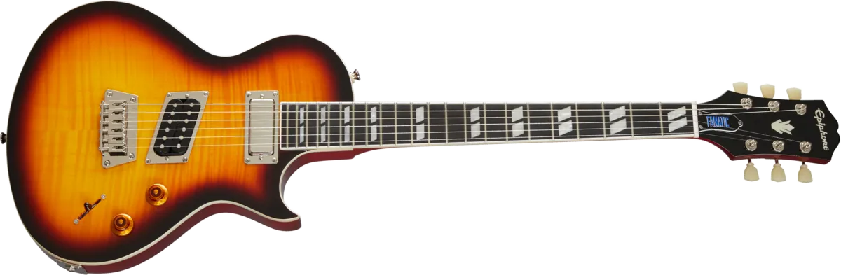 Epiphone is proud to present the debut Epiphone signature model designed by Heart co-founder and Rock and Roll Hall of Fame member Nancy Wilson. Featuring a mahogany body with a figured maple veneer top, the Nighthawk™ body shape was first introduced in 1993 and is compact and comfortable. The Epiphone Nancy Wilson Fanatic comes equipped with ProBucker™ humbuckers, a 5-way pickup selector switch for a wide variety of tonal options, master volume and tone controls, a fast-playing rounded C profile mahogany neck with an ebony fretboard, and features an attractive Fireburst Gloss finish. Includes hardshell case.