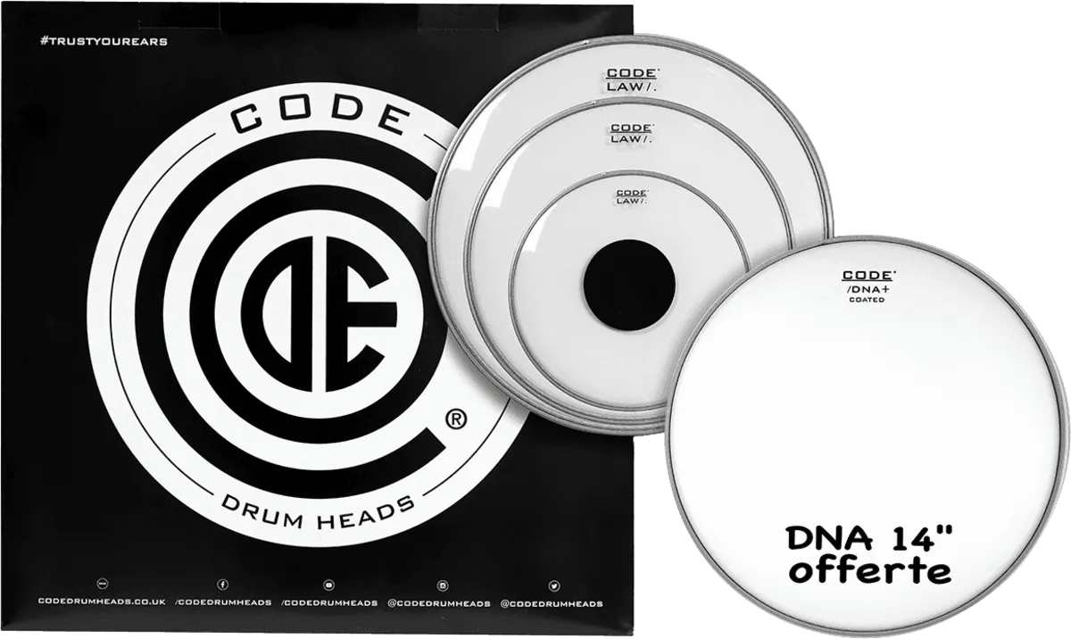 LAW Fusion Pack with 10", 12", 14" clear drum heads for toms, and one 14" DNA coated snare head.