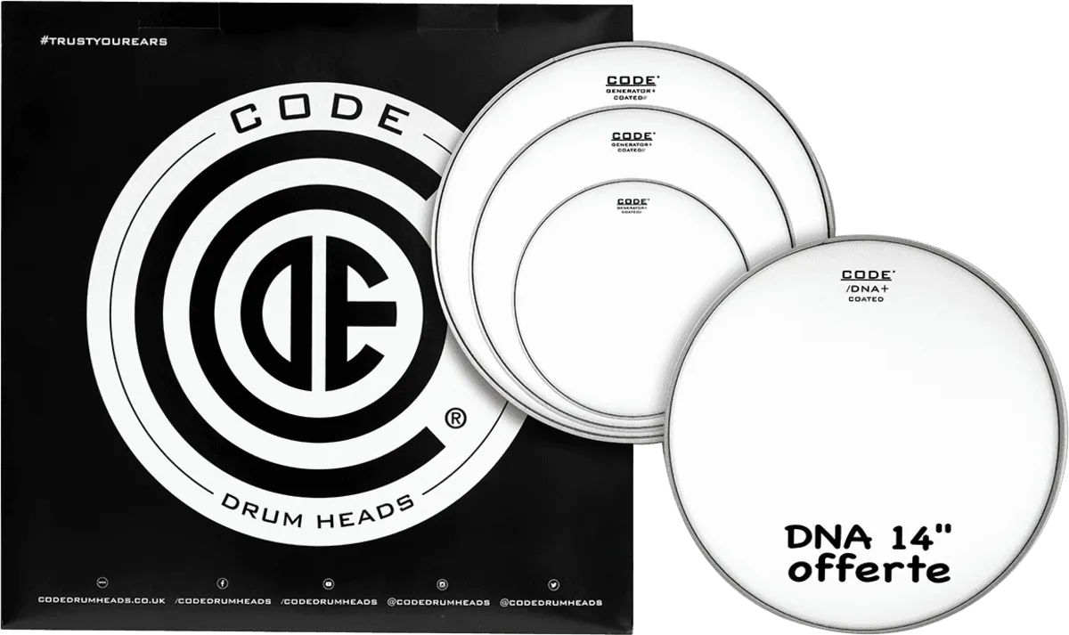 Fusion Pack with 10", 12", 14" Generator coated heads for toms, and one 14" DNA coated snare head.