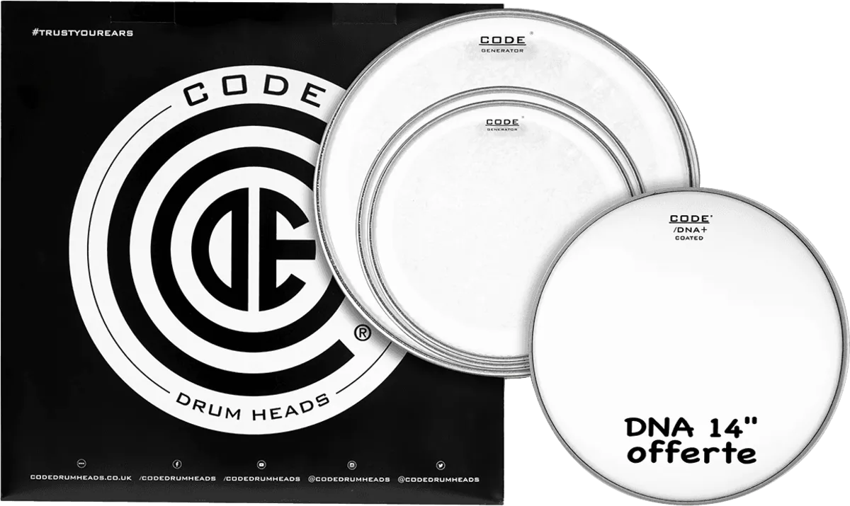 Standard Pack with 12", 13", 16" Generator clear heads for toms, and one 14" DNA coated snare head.