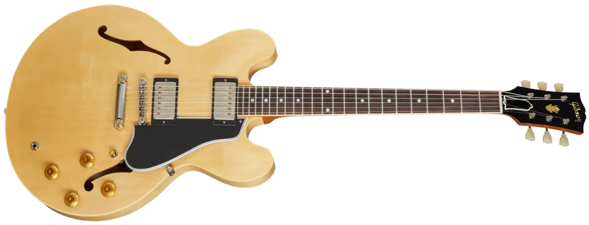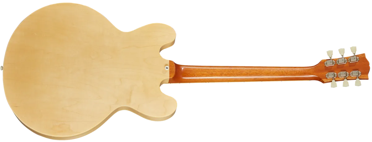 The Historic Reissue ES-335 is back and better than ever thanks to a year of studying, scanning, and listening to original examples. The expert craftspeople at Gibson Custom Shop have rendered every contour, profile, inlay and color of the priceless vintage models in magnificent detail. The result is a playing and ownership experience that will keep you coming back for more. The 1959 Reissue models feature rounded cutaways, Medium C-shape neck profiles scanned from originals, dot inlays and vintage-replica parts.