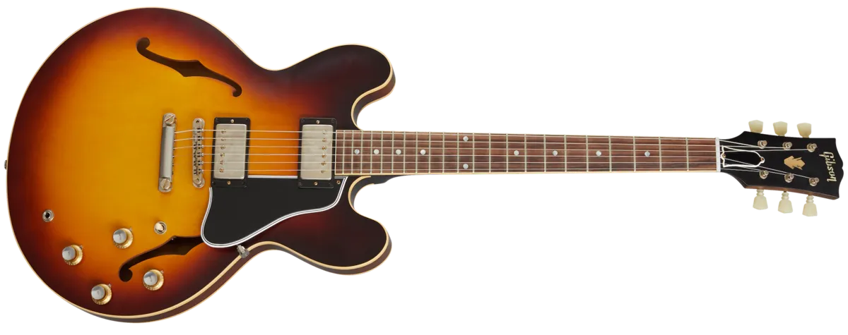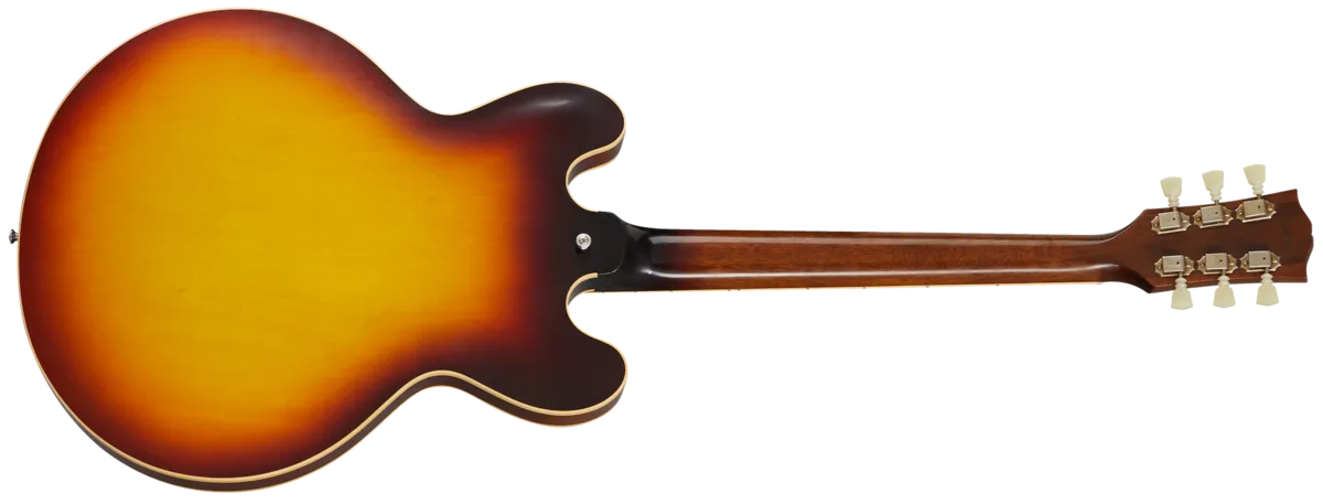 The Historic Reissue ES-335 is back and better than ever thanks to a year of studying, scanning, and listening to original examples. The expert craftspeople at Gibson Custom Shop have rendered every contour, profile, inlay and color of the priceless vintage models in magnificent detail. The result is a playing and ownership experience that will keep you coming back for more. The 1961 Reissue models utilize rounded cutaways, slim-taper neck profiles scanned from originals, dot inlays and vintage-replica parts.