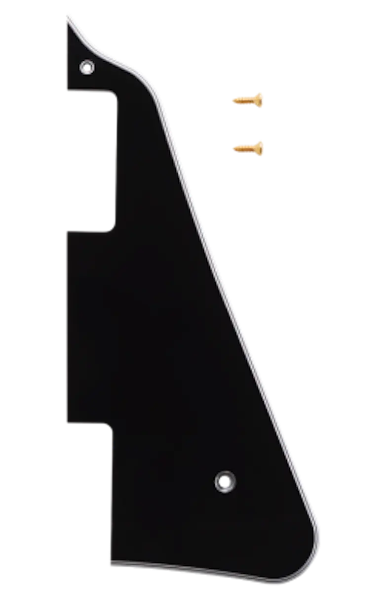An original replacement Gibson five-ply vinyl pickguard designed specifically for the Les Paul Custom. This distinct pickguard adds a traditional vintage look to any Les Paul Custom. This OEM part comes with installation screws, and is available only in Black.
