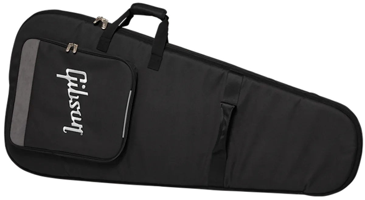 Take your Gibson instrument with you in one of our Premium Gig Bags. They have a rugged polyester exterior and plush-lined interior to help keep your instrument safe and secure and come equipped with two external accessory compartments that are perfect for straps, picks, cables, and other essentials. This Premium Gig Bag is designed to hold Explorer™, Flying V™, and Firebird™ models.