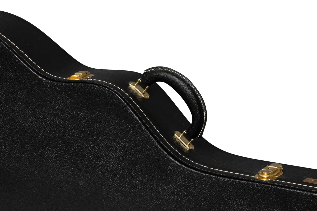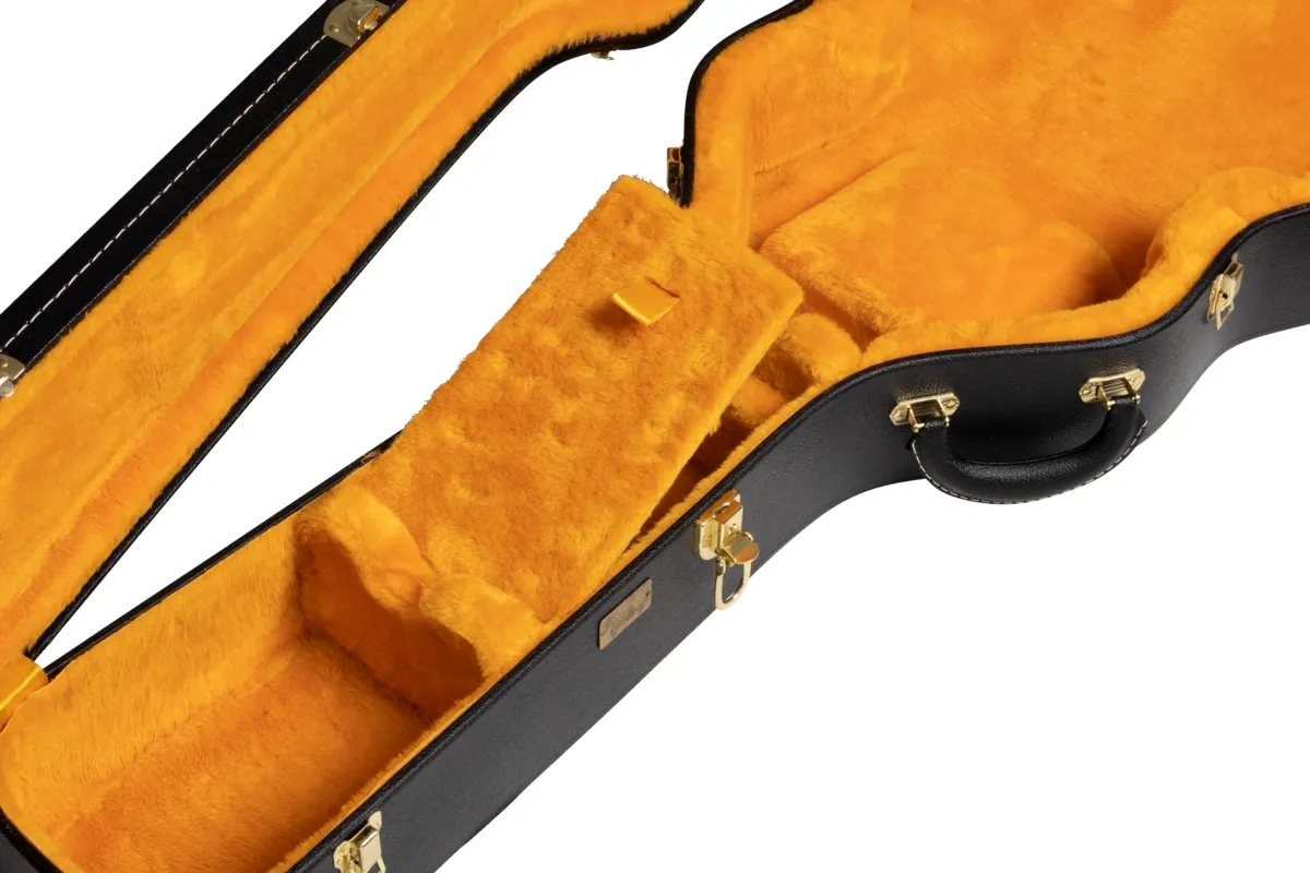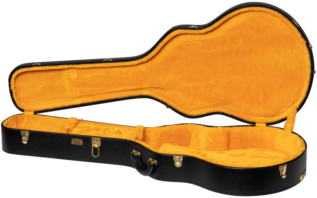 Since 1918, Lifton™ has been acclaimed worldwide for fine leather goods and musical instrument cases that are as synonymous with Gibson as the instruments inside of them. Lifton continues that tradition of excellence today with our Lifton Historic Hardshell Cases. Inspired by the iconic cases from the 50s and 60s that were made during the height of Gibson's Golden Era, they feature classic styling and are designed to provide a lifetime of protection for your prized Gibson guitar. Designed to fit: 60s ES Models (specifically 60s ES-335, ES-355s, and Trini Lopez models, but will fit other EST models such as ES-330, ES-345, & Lucille) Exterior: Black Pebble Tolex Interior: Goldenrod Plush Historic D-shaped handle Historic style latches with one locking latch Accessory compartment with ribbon pulltab Internal dimensions: 43 7/8" total interior length, 23 3/8" body length, 11 1/4" upper bout width, 9 1/2" waist width, 15 5/8" lower bout width, 3 1/2" depth