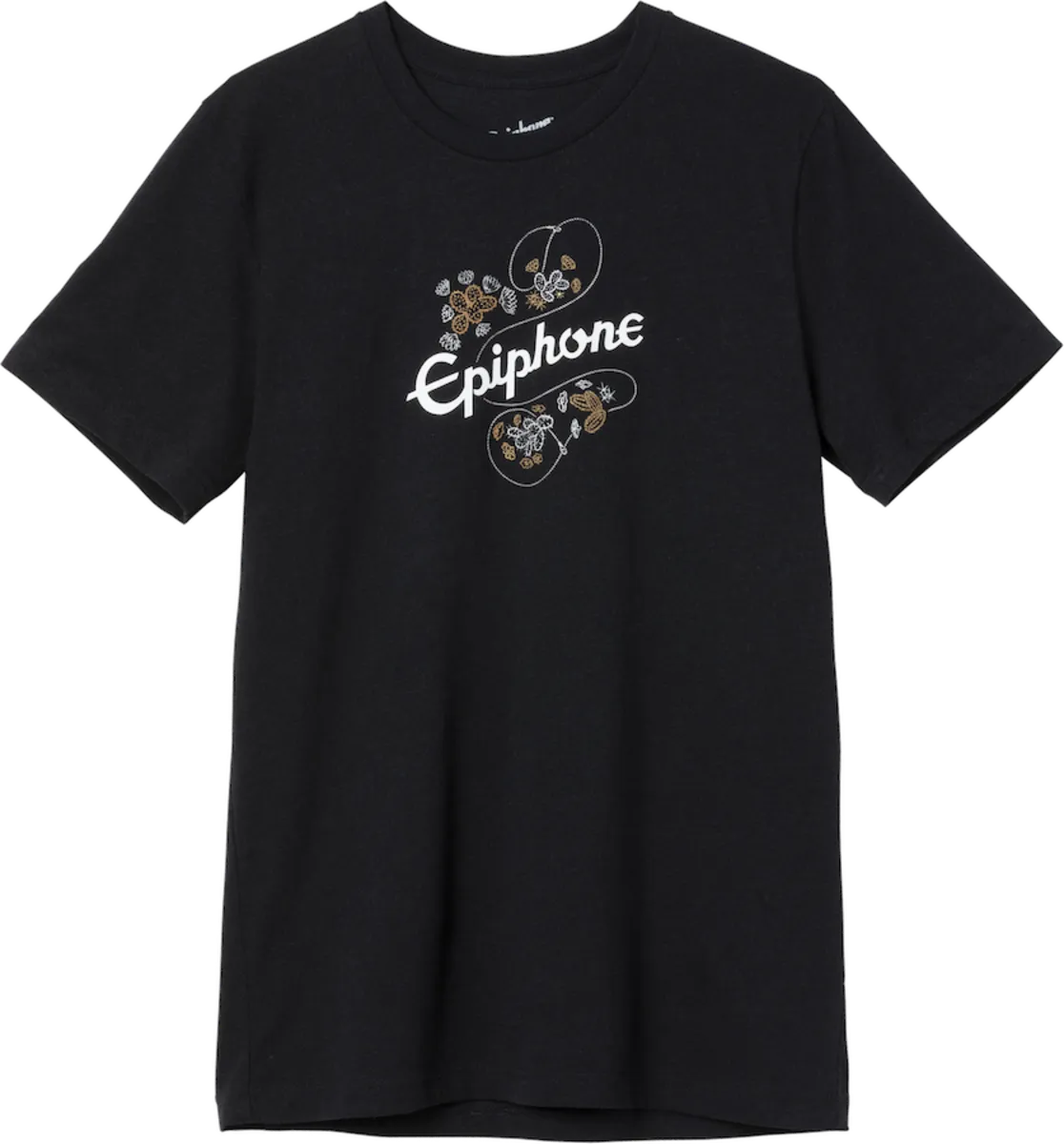 This black Epiphone Frontier tee features the vintage Epiphone logo and the iconic Frontier "rope and cactus" pickguard graphic. This will be one of your favorite tee shirts.