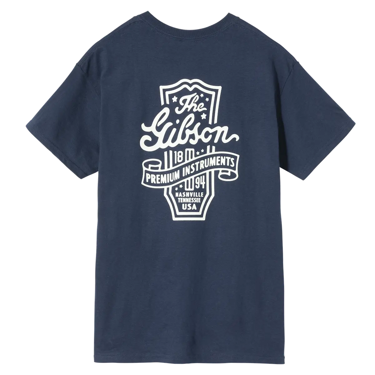 This vintage-inspired design by Oxford Pennant features "The Gibson" cursive logo on the front pocket and a headstock design on the back.