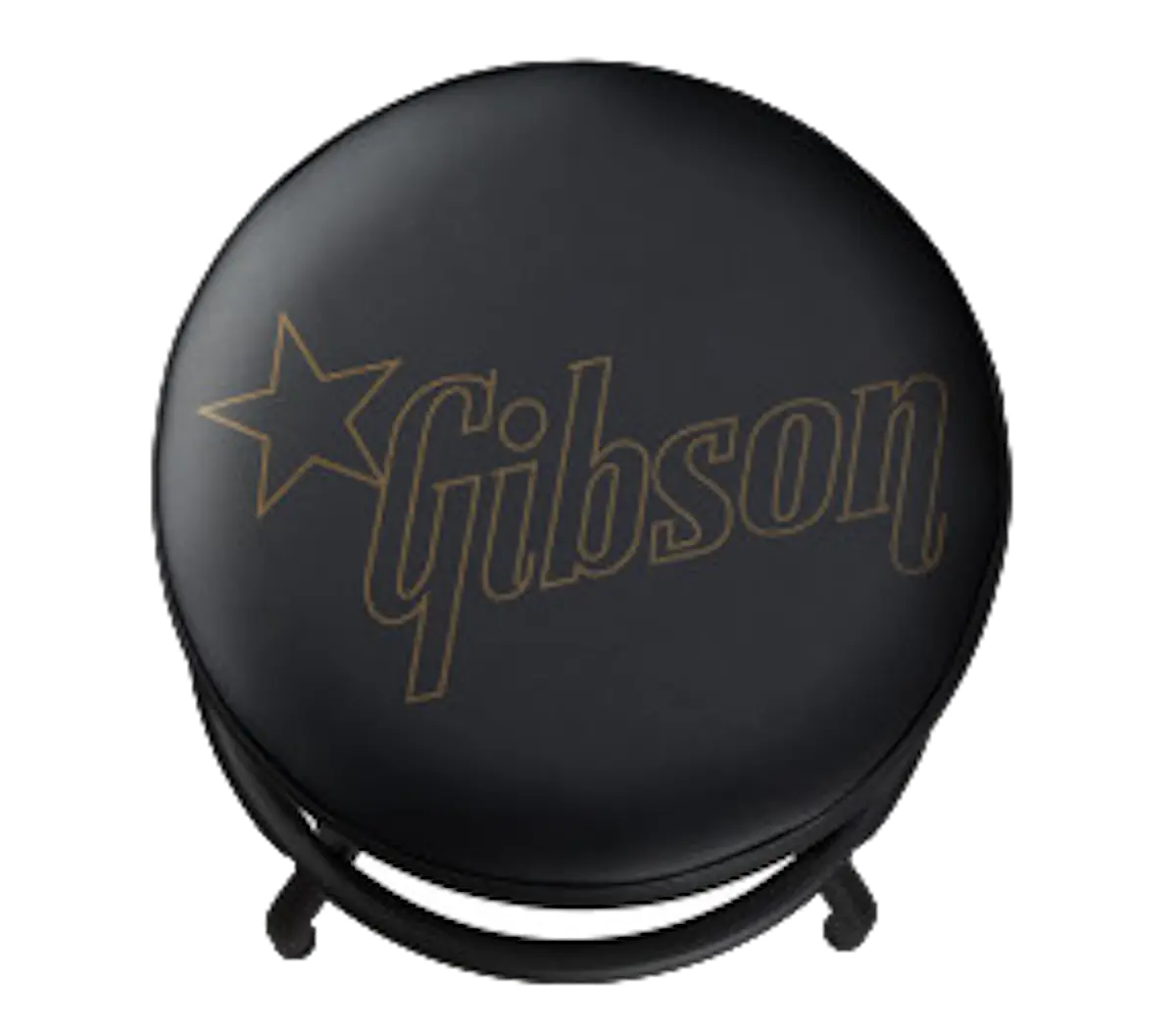 This 24" high playing stool has a swiveling vinyl seat that is padded for comfort and emblazoned with the Gibson Star logo. The classic barstool-style tubular steel legs are matte black, and a foot ring is included for extra comfort.