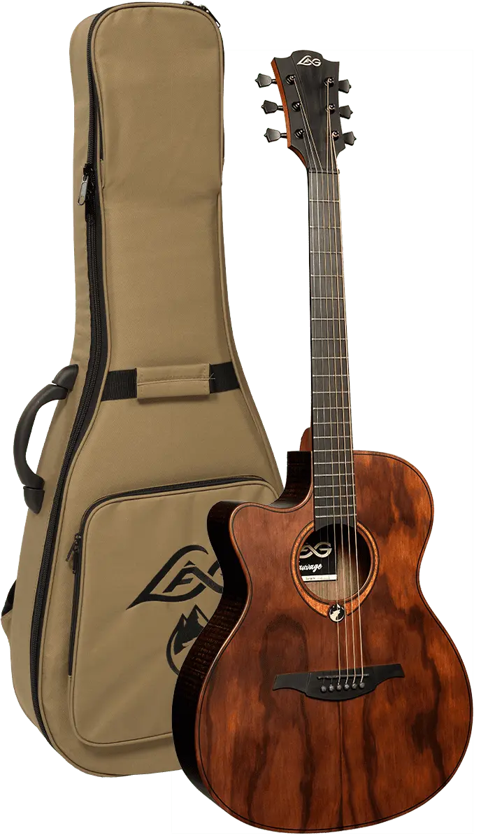 Featuring the iconic Lag headstock design mirrored on the bridge, a rough sawn look on the back and sides, quarter round body bindings, and black machine heads, the Sauvage-ACE-L stands out for its unique aesthetic charm.