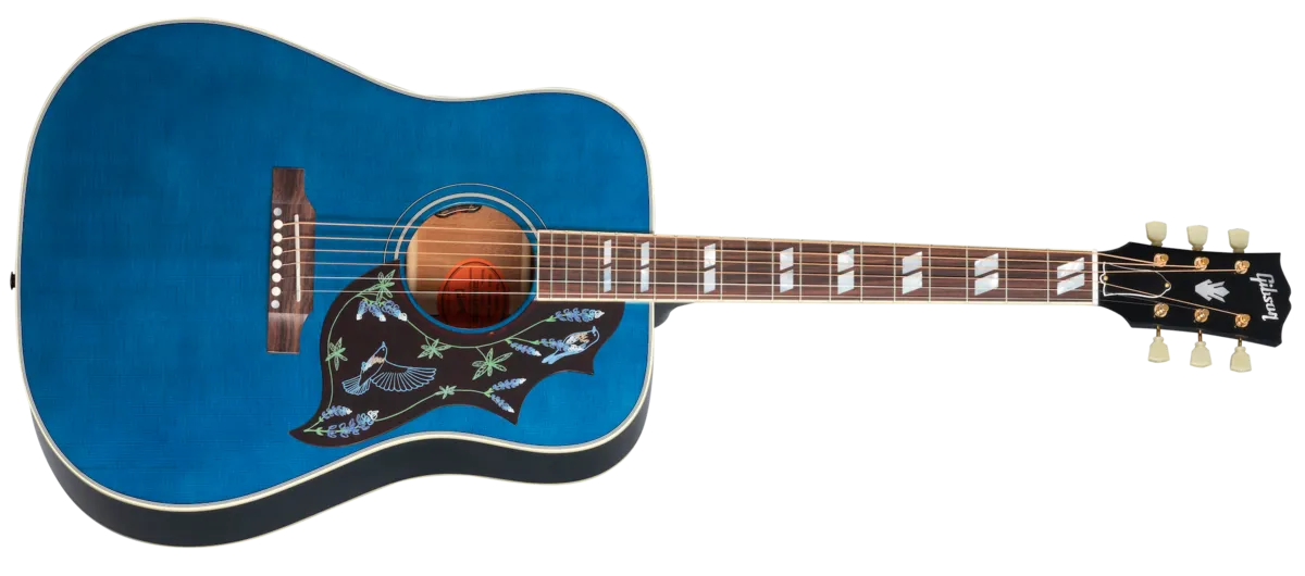 Named as one of the most influential people in the world by TIME, Miranda Lambert is among the brightest stars in modern country music. An acclaimed singer and songwriter, she has won multiple GRAMMY® and Country Music Association Awards and has been honored with more Academy of Country Music Awards than any artist in history. A constant champion of other female artists - including numerous collaborations and her work as a member of the Pistol Annies she's made it a priority to encourage more girls and women to pick up guitars themselves. Her music and mission have been honored with a new Gibson signature model guitar: the Miranda Lambert Bluebird is as distinctive as its namesake. A variation on the iconic Hummingbird ™, it features a square shoulder mahogany body with a Sitka spruce top, a vivid Bluebonnet nitrocellulose lacquer finish celebrating the official flower of her home state of Texas, and a custom Bluebird pickguard inspired by her chart-topping song of the same name. The L.R. Baggs ™ TC electronics make this exceptional guitar stage and studio ready from the moment you take it out of the included hardshell case.
