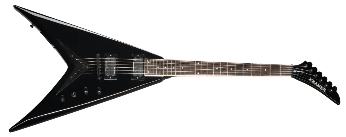 Kramer is stoked to welcome Dave Mustaine, the legendary guitarist, vocalist, songwriter, and founder of the multi-platinum selling and Grammy® Award-winning band, MEGADETH, to the Kramer Artist lineup. The Kramer Dave Mustaine Vanguard delivers the powerful, heavy sounds and exceptional playing performance on the stage and in the studio that Dave demands. It is equipped with a symmetrical mahogany Vanguard body, a 25.5" scale mahogany neck with medium C Dave Mustaine custom profile, an ebony fretboard with 24 jumbo frets, black chrome hardware, and Dave Mustaine's signature Seymour Duncan® Thrash Factor pickup set. Available in Ebony and Silver Metallic, a custom Dave Mustaine hardshell case is also included.