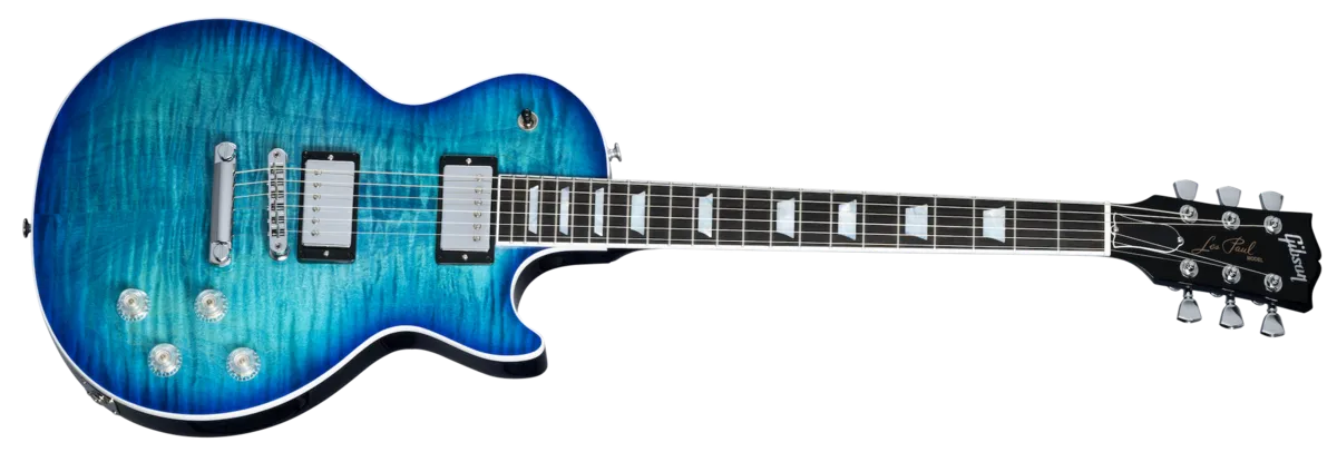 The new Gibson Les Paul™ Modern Figured incorporates many contemporary updates players have embraced, such as a lighter-weight mahogany body with a figured AAA maple top and a comfortable, fast-playing Slim Taper™ neck profile. The Modern fingerboard is crafted with genuine ebony and has a compound radius for lower and cleaner action. The neck/body joint features the Modern Contoured Heel for effortless access to the highest frets and maximum sustain and stability. Hardware upgrades include Grover® locking Rotomatic® tuners, clear Top Hat knobs, and Burstbucker Pro ™ and Burstbucker Pro + pickups. The control assembly features four push-pull pots to switch between Gibson humbucker™ and single coil P-90 sounds, both of which have defined so genres of music across multiple generations since we invented them, along with phase switching and pure bypass for additional sonic variety. The new Gibson Les Paul Modern Figured is here to shape sound for future generations.