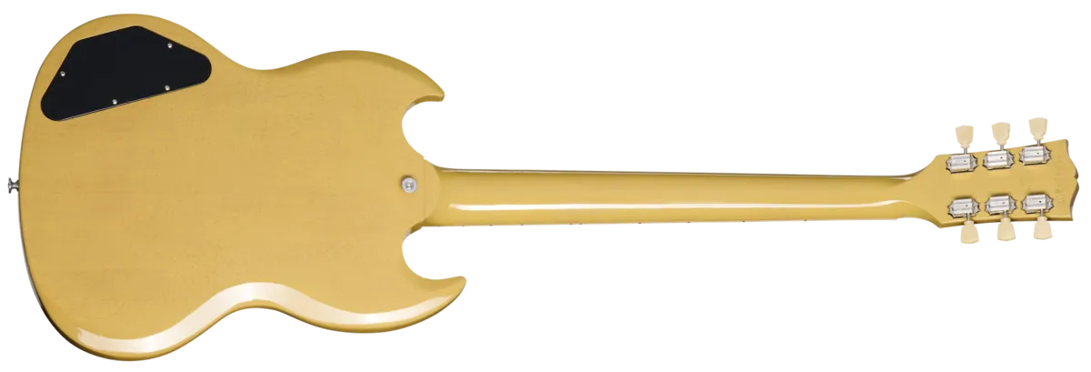 In 1961, the Les Paul™ model was put on hiatus, and an all-new design evolved into what is today known as the SG™ or "solid guitar." The Gibson SG Standard '61 retains the styling of the original featuring a Slim Taper™ mahogany neck and a bound rosewood fingerboard. The mahogany body features deeply sculpted body scarfing, a 5-ply teardrop pickguard, and a 22nd-fret neck joint. The nickel-plated hardware includes a classic-style Tune-O-Matic™ bridge and Keystone tuners. The pickups are 60s Burstbucker™ humbuckers™ for a classic voice with added power and top end. Controls feature audio taper potentiometers and Orange Drop® capacitors. A hardshell case is also included.