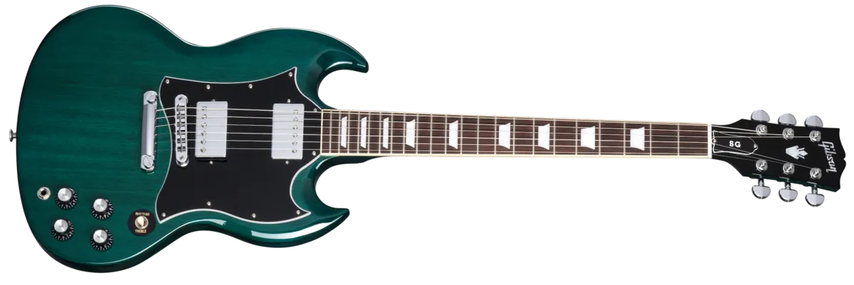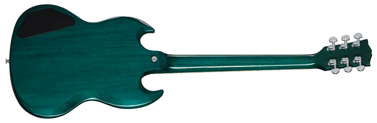 The Gibson SG Standard rocks the classic looks and features associated with the late 60s style SG™ models sought after by many. Now featured as part of the Custom Color Series, it adds exciting new color options to liven up any stage or guitar collection. features a rounded profile mahogany neck, bound rosewood fingerboard, long tenon 19th fret neck joint, and a solid mahogany body that provides the backbone for singing sustain. The 490R and 490T Alnico 2 pickups provide the power to drive. A black, 5-ply, full-face pickguard set this SG Standard apart from others... a truly versatile classic.