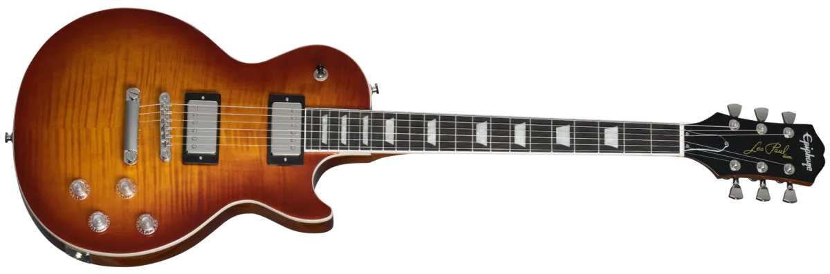 Epiphone's new Les Paul™ Modern Figured from the Inspired by Gibson ™ Collection brings a new look and sound to the world's greatest electric guitar. Featuring a weight relief mahogany body with a beautiful figured top, ProBucker™ pickups with coil-splitting, phase switching, and a treble bleed circuit. Plus, Grover® Locking Rotomatic® tuners with tulip buttons and an 18:1 ratio, Graph Tech® nut, PosiLok strap buttons, and an ebony fingerboard. A premium gig bag is included.