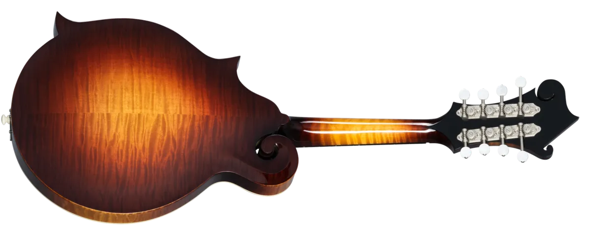 The F-5G is a Modern Collection version of Gibson's iconic F-5 design. Tuned to the needs of modern mandolin players, its player-friendly specs include an unbound ebony fingerboard, a 14-degree fingerboard radius, no pickguard, and a short fingerboard extension. The neck and body are made from figured red maple and are coupled with a carved Sitka spruce top. The F-5G features refreshed specifications, contours, and construction for optimal acoustic response. Finished in Dark Burst gloss nitrocellulose