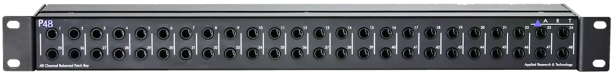 The ART P48 48-point balanced patchbay is the best solution for organizing cables while optimizing connectivity in any studio or live PA rack. Designed for maximum convenience, each pair of TRS 1/4-inch balanced I/O can be configured for normal or half-normal operation.