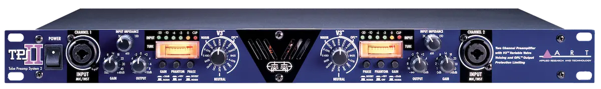 Designed as the ideal preamp for any application, the tube driven TPS II and DPS II add warmth and texture to any audio source. These two-channel high performance preamps use a hand selected 12AX7A tube in the low noise input circuitry. This, coupled with ART’s proprietary V3™ (Variable Valve Voicing) and variable input impedance allow the TPS II and DPS II to deliver incredible performance from cost effective single space rackmount solutions.