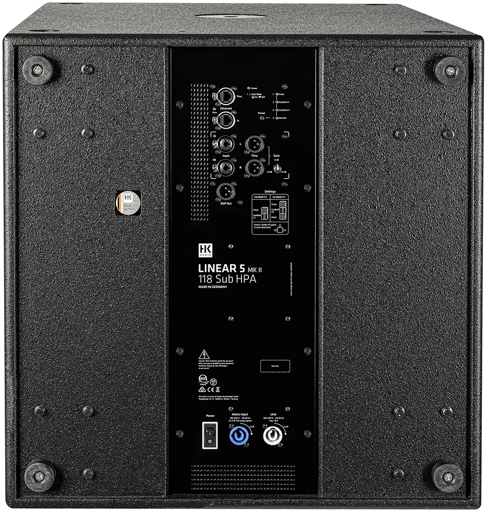 Compact, with the most powerful power amplifier in the series and very precise and powerful bass reproduction.PowerCon connections with link for easy cabling.