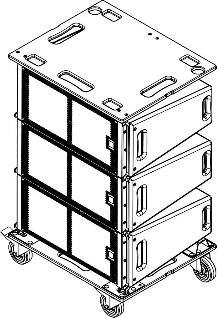 The COSMO C-WB Wheelboard offers a simple and space-saving alternative for transporting the COSMO C 6, C 8 or C 10 mid/high units. The line array units are well protected during transport thanks to the top plate. An optional matching protective cover is also available, providing the necessary protection during onward transport of the line array. The packagecontains the wheelboard and the top plate.